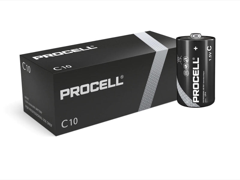 Compatible with an array of larger medium-to-high drain devices, this 10-pack of Duracell Procell C batteries is a real force to be reckoned with. Hailed as one of the most professional and reliable battery ranges currently available on the market, Procell batteries guarantee premium longevity you simply won't experience from standard alkaline cells.