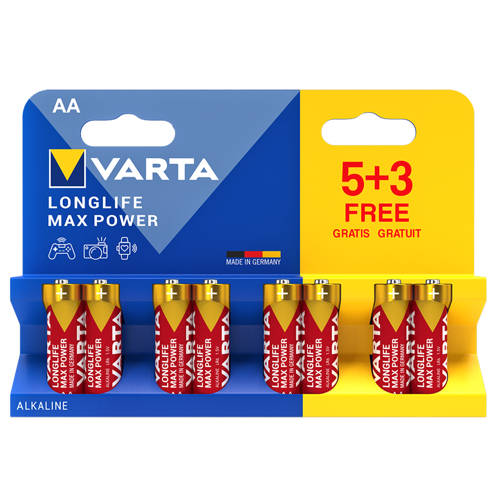 The Varta Longlife Max Power AA 8-pack offers trusted performance, excellent stability, and a convenient size for users seeking dependable alkaline power for everyday devices.