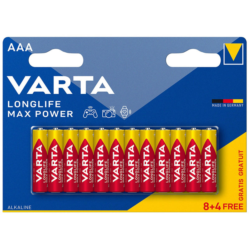 This 12-pack of Varta Longlife Max Power AAA LR03 Alkaline Batteries is perfect for powering your everyday small devices such as flashlights, digital cameras and TV remotes. Manufactured in Germany with advanced alkaline technology, they provide long-lasting power, giving you peace of mind.
