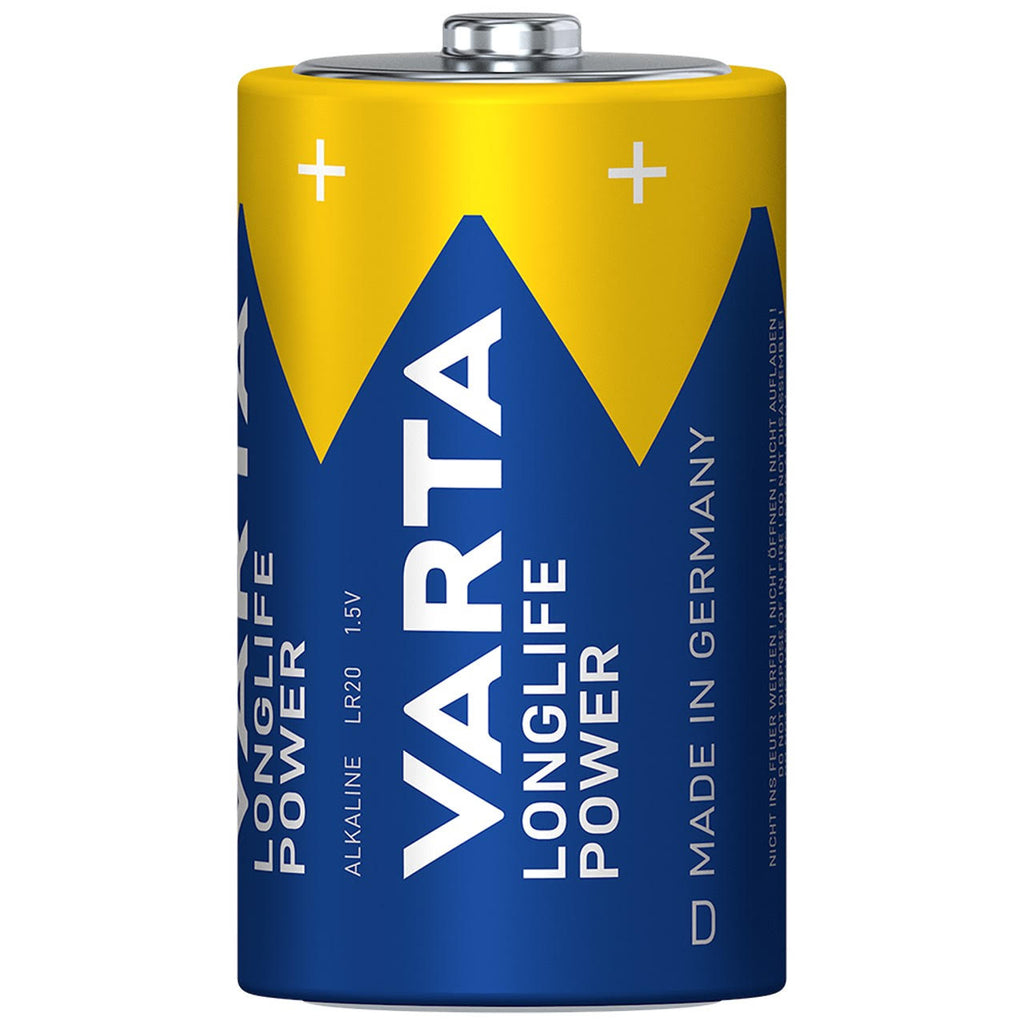 This 2-pack of Varta Longlife Power D LR20 Alkaline Batteries are crafted to a high German quality standard. Enjoy maximum performance with each tested battery for reliable, long-lasting power. Get the most out of your electronics with Varta.